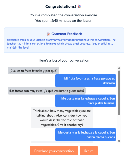Students will be engaged in captivating conversations based on your curriculum and improve their verbal and listening skills with every real-time grammar correction!