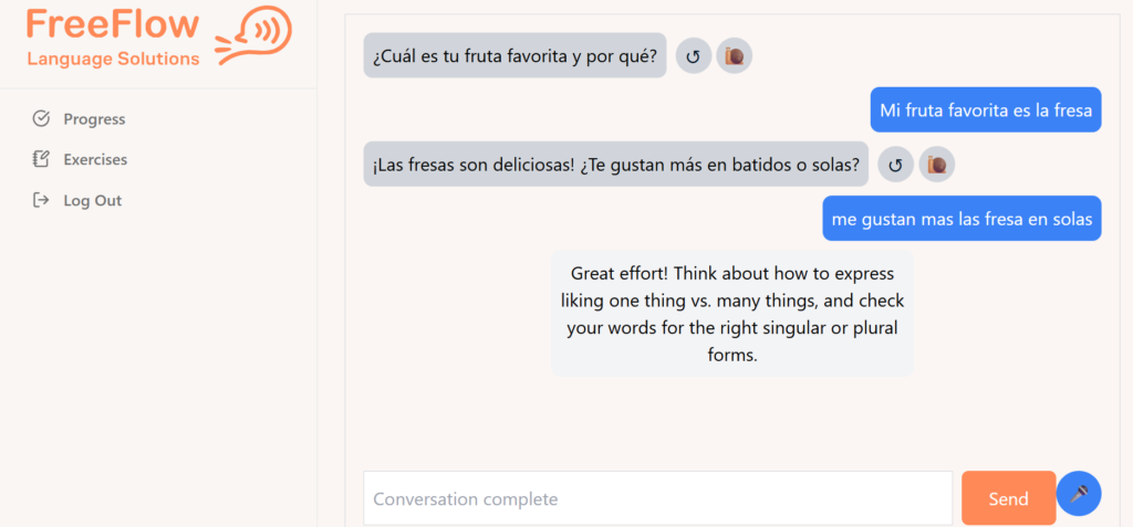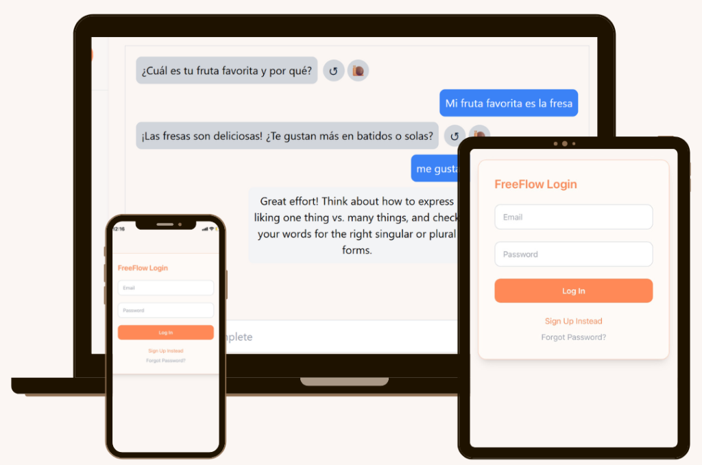 FreeFlow provides students with realistic conversation practice and clear grammar support.